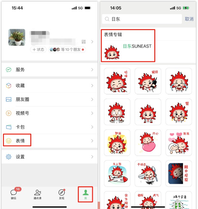 第一步:點(diǎn)擊“我”,搜過(guò)表情“日東”